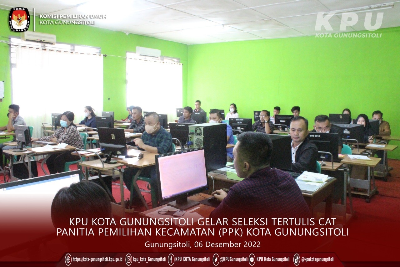 Gunungsitoli, 07 Desember 2022 | Komisi Pemilihan Umum (KPU) Kota Gunungsitoli telah melaksanakan tes tertulis dengan metode computer assisted test (CAT) bagi peserta seleksi Panitia Pemilihan Kecamatan (PPK) Pemilu 2024 Kota Gunungsitoli, bertempat di SMA Negeri 3 Gunungsitoli, Selasa (06/12/22). Seleksi tertulis ini dilaksanakan serentak secara nasional, termasuk seleksi tertulis dengan metode konvensional. CAT di Kota Gunungsitoli pada awalnya dijadwalkan pada pukul 08.30 Wib, namun karena ada sedikit kendala teknis, gelombang pertama dimulai pada pukul 10.45 Wib, diikuti oleh gelombang kedua sedangkan gelombang III sampai V bergeser pada hari Rabu tanggal 7 Desember 2022. Pada hari pertama CAT, Anggota KPU Provinsi Sumatera Utara Mulia Banurea menyempatkan diri singgah di lokasi CAT Kota Gunungsitoli, ditemani oleh ketua KPU Kota Gunungsitoli Firman N.Gea. Mulia membawa tim teknis untuk mengatasi sedikit kendala teknis yang ada sampai seleksi CAT bisa dimulai dengan lancar. Mulia kemudian melanjutkan perjalanan ke Nias Barat dalam rangka supervisi seleksi tertulis konvensional yang diselenggarakan oleh KPU Nias Barat. Pelaksanaan tahapan CAT ini dihadiri oleh Anggota KPU kota Gunungsitoli Happy Suryani Harefa, Juliman Berkat Harefa dan Darni Saleh Baeha. Happy sebagai Divisi yang bertanggungjawab menjelaskan bahwa seleksi tertulis hanya bisa diikuti oleh pendaftar yg lulus penelitian administrasi, antara lain; 73 peserta dari Kecamatan Gunungsitoli, 41 dari Kec Gunungsitoli Idanoi, 27 dari Kec Gunungsitoli Selatan, 25 dari Kec Gunungsitoli Barat, 18 dari Kec Gunungsitoli Alo’oa dan 32 dari Kec Gunungsitoli Utara. KPU kota Gunungsitoli langsung mengumumkan nilai peserta begitu seleksi CAT selesai dilaksanakan. Hal ini sebagai bentuk transparansi KPU dalam rangka meningkatkan kepercayaan publik dan mengurangi rasa curiga terhadap proses pembentukan PPK. Kelulusan akan ditetapkan dan diumumkan secara resmi oleh KPU Kota Gunungsitoli pada tanggal 8-10 Desember 2022. #*PUTRA DACHI*#