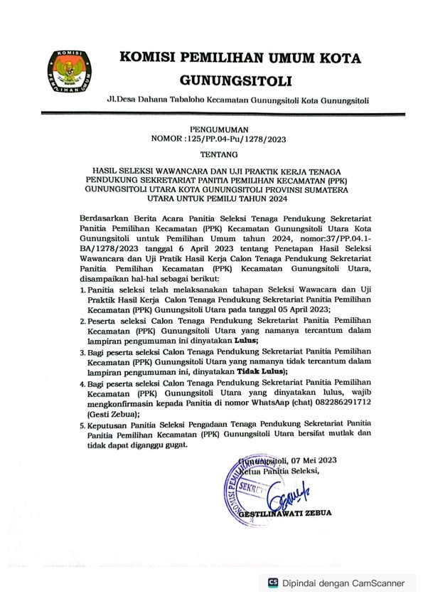 e. KPU Kota Gunungsitoli Periode 2023-2028.