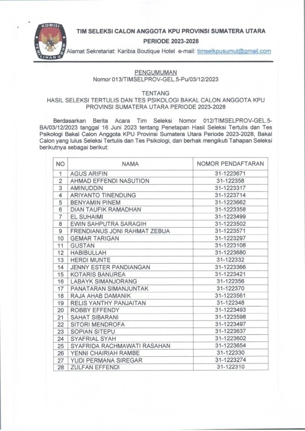 b. KPU Kabupaten Nias Barat Periode 2023-2028;